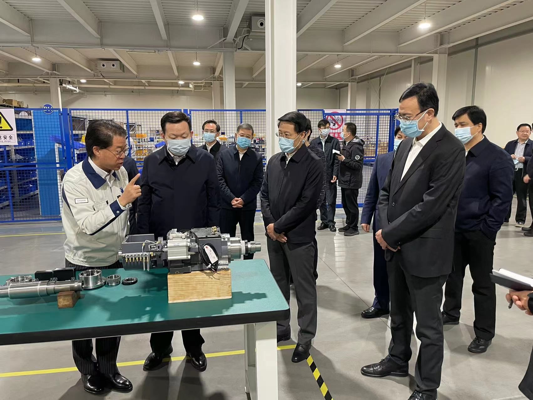 11月2日,山東省委副書(shū)記、省長(zhǎng)周乃翔一行到淄博市調(diào)研新舊動(dòng)能轉(zhuǎn)換、高質(zhì)量發(fā)展等工作,第一站來(lái)到西鐵城新景高端裝備智能制造產(chǎn)業(yè)園。公司董事、總經(jīng)理?xiàng)畋壬敿?xì)介紹了企業(yè)生產(chǎn)經(jīng)營(yíng)、產(chǎn)品研發(fā)、市場(chǎng)開(kāi)拓等情況。