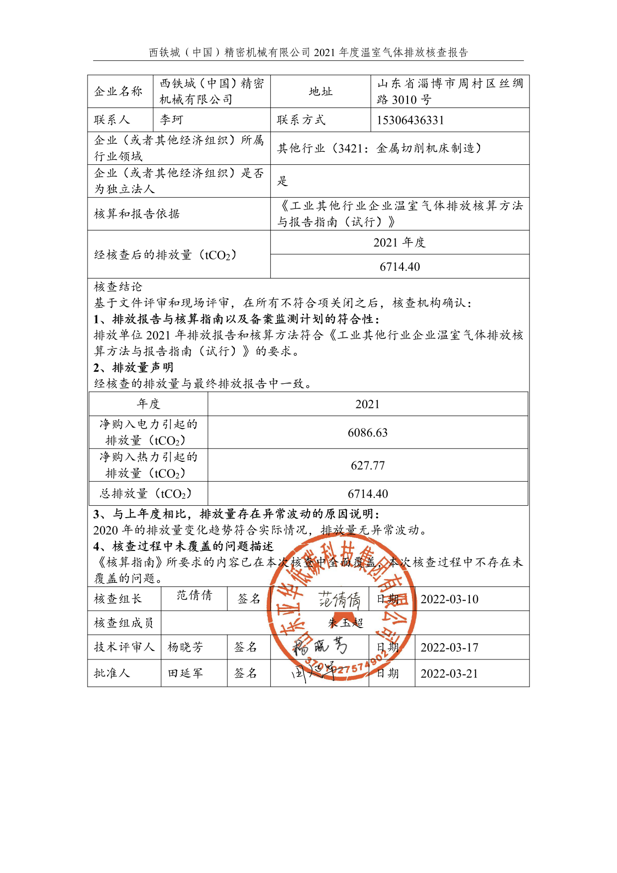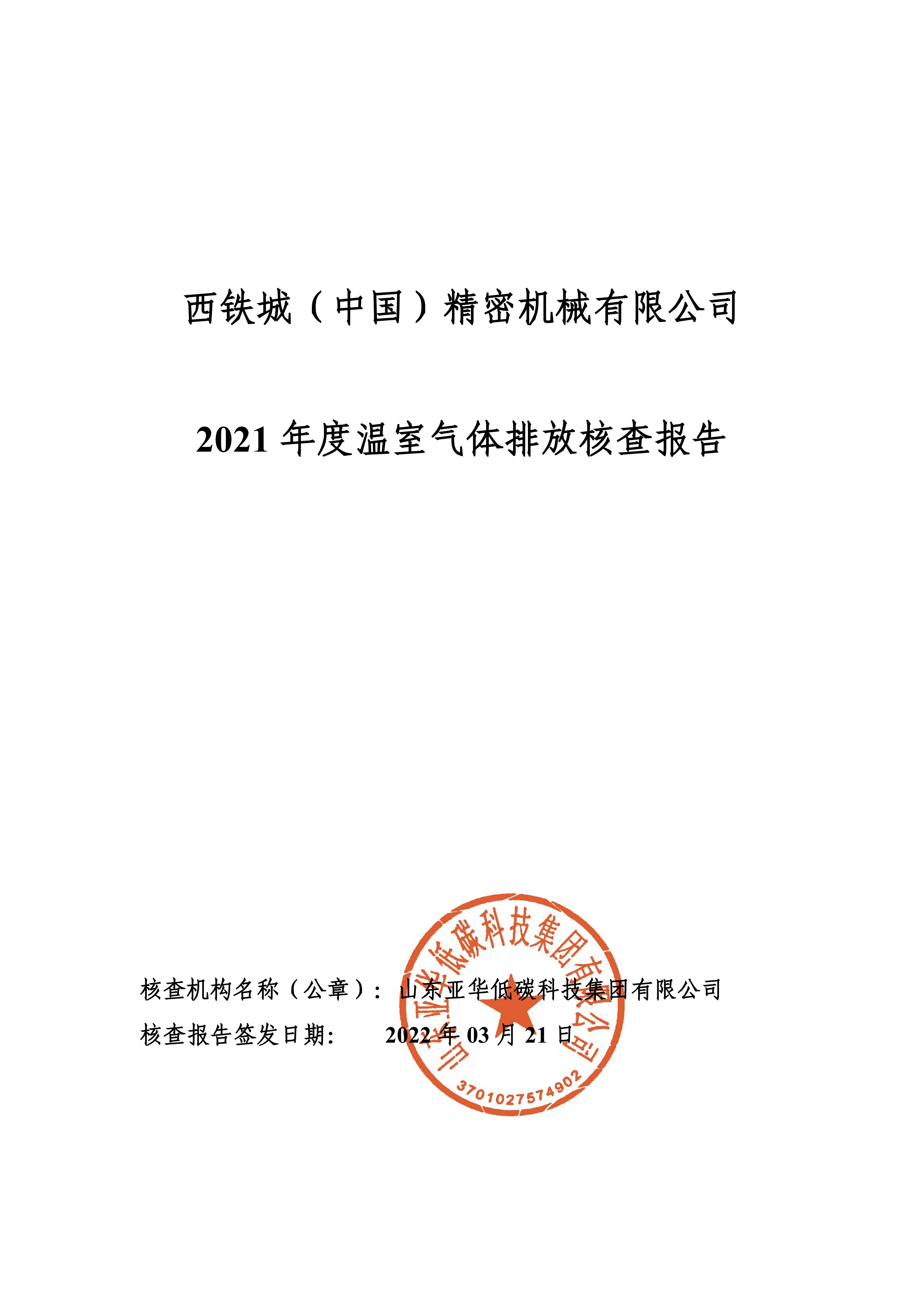 西鐵城(中國)精密機械有限公司2021年度溫室氣體排放核查報告