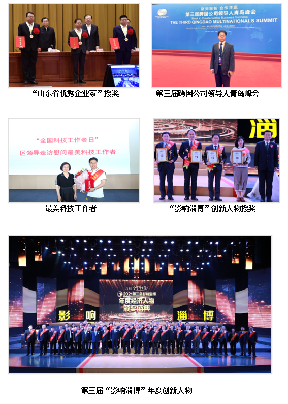公司董事、總經理楊冰先生始終以“為客戶提供優質產品和服務,為員工提供優良環境和待遇,為股東提供穩定的收益,為社會創造更多的價值”為經營理念,帶領團隊披荊斬棘,業績再創新高。2022年度,楊冰先生先后榮獲山東省優秀企業家、淄博市“最美科技工作者”、2021第三屆“影響淄博”年度創新人物、2021創新淄博年度領秀人物、首屆“淄博市質量領軍人物”等榮譽稱號,并作為市人大代表參加第十六屆市人大會,勇擔社會責任,助力當地經濟發展。